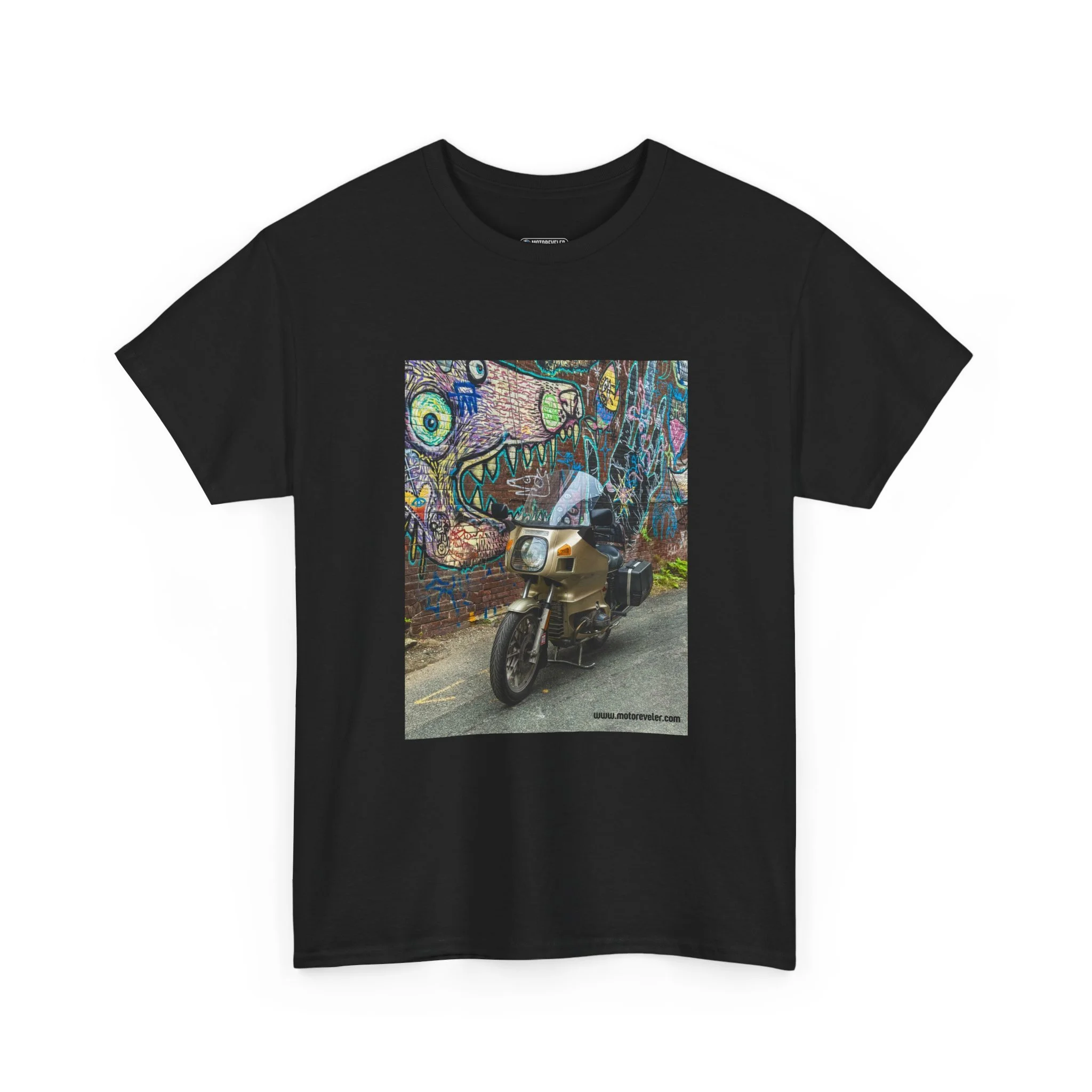 This shirt pairs that line with a moment in time—a machine paused in front of a wall painted with someone else’s imagination. A reminder that motorcycles are never just transportation. They carry memory, connection, solitude, and sometimes the only version of ourselves that feels fully honest.