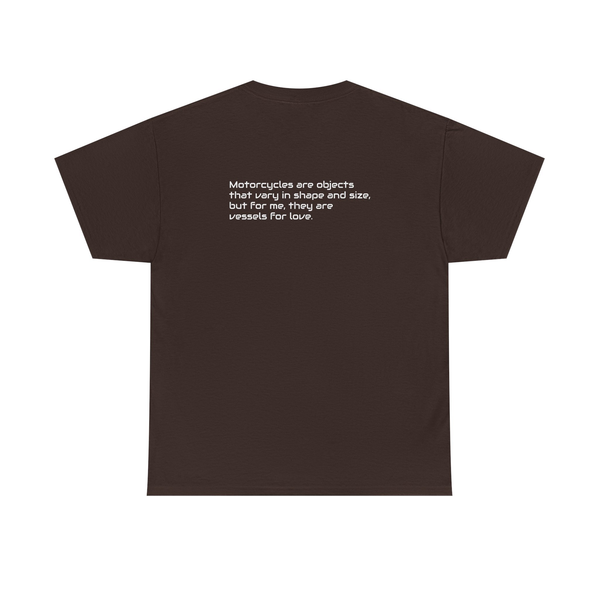 This soft, classic tee carries a quiet story for riders and city wanderers. A single-frame photo of a vintage motorcycle parked before a bright, graffiti-splashed wall sits on the chest — a snapshot of urban detours, slow mornings, and machines that hold memories. On the back, a small, thoughtful line reads like a note from a fellow rider, turning the shirt into something personal rather than loud. It drapes relaxed and familiar: the crew neck and classic fit let the image speak without fuss. Wear it to coffee runs, gallery walks, or to keep close the feeling of an empty street and the hum of a good motorbike beneath you.
